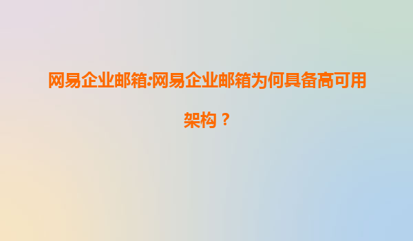 网易企业邮箱的高可用架构建立在多重技术保障之上: