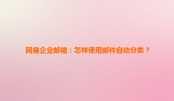网易企业邮箱邮件自动分类功能全解析:高效管理,智能有序