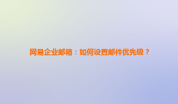网易企业邮箱的优先级设置非常简单,只需以下几个步骤即可完成: