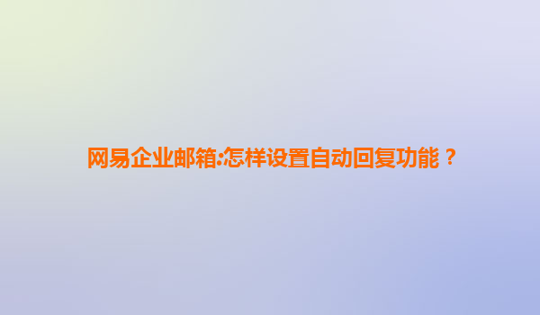 在商务沟通中,自动回复是企业专业形象的重要体现。网易企业邮箱作为国内领先的企业通讯解决方案,其自动回复功能具备以下核心优势:
