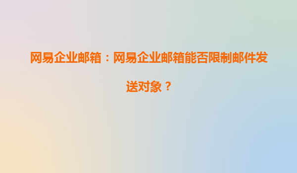 网易企业邮箱:网易企业邮箱能否限制邮件发送对象?