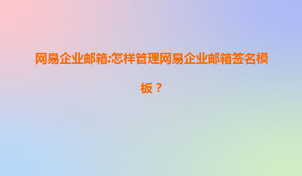 登录网易企业邮箱管理后台>企业应用>邮件签名,重点操作包括: