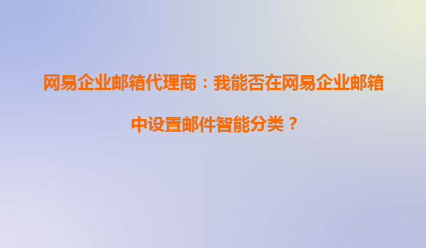 网易企业邮箱代理商:我能否在网易企业邮箱中设置邮件智能分类?