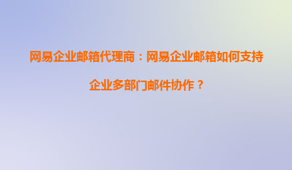 网易企业邮箱代理商:网易企业邮箱如何支持企业多部门邮件协作?