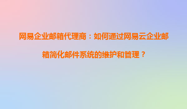 网易企业邮箱代理商:如何通过网易云企业邮箱简化邮件系统的维护和管理?