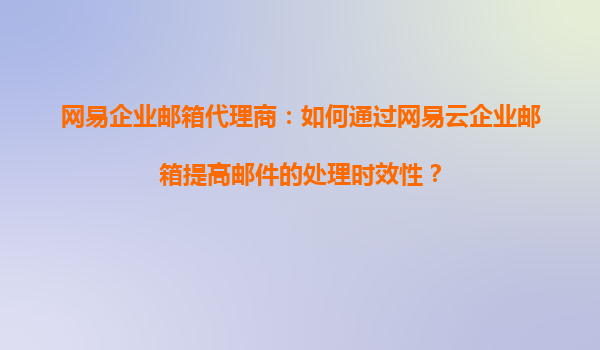 网易企业邮箱代理商分享:如何通过网易云企业邮箱提高邮件处理时效性