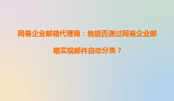 网易企业邮箱代理商解答:如何通过网易企业邮箱实现邮件自动分类?
