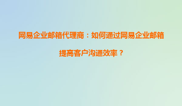 网易企业邮箱代理商:如何通过网易企业邮箱提高客户沟通效率?