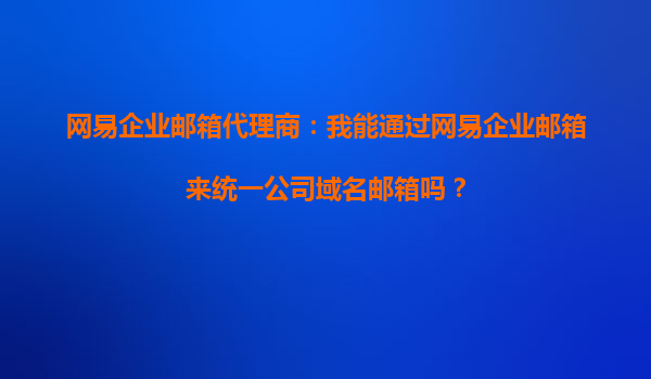 网易企业邮箱代理商:我能通过网易企业邮箱来统一公司域名邮箱吗?