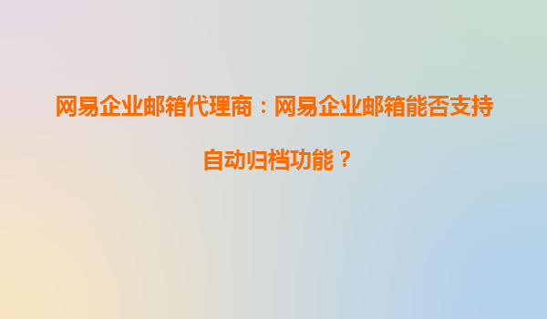 网易企业邮箱作为国内领先的企业邮件服务提供商之一,凭借其强大的功能和稳定的性能,深受企业用户的青睐。其中,自动归档功能是许多企业关注的重点之一。那么,网易企业邮箱是否支持自动归档功能呢?本文将为您详细解答,并介绍网易企业邮箱的其他优势。