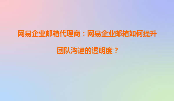 网易企业邮箱代理商:网易企业邮箱如何提升团队沟通的透明度?