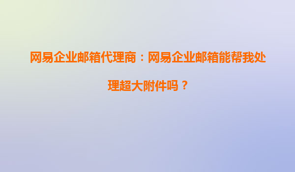 网易企业邮箱代理商:网易企业邮箱能帮我处理超大附件吗?