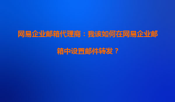 网易企业邮箱代理商:我该如何在网易企业邮箱中设置邮件转发?