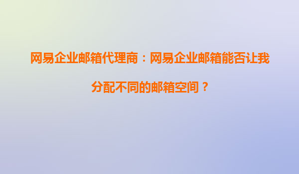 网易企业邮箱代理商解析:如何灵活分配邮箱空间?