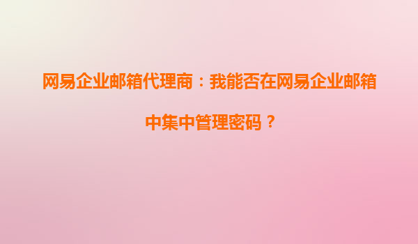 网易企业邮箱代理商:我能否在网易企业邮箱中集中管理密码?
