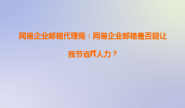 网易企业邮箱代理商:网易企业邮箱是否能让我节省IT人力?