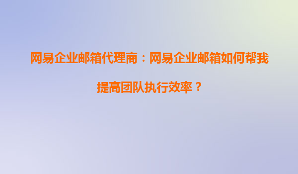 网易企业邮箱代理商:网易企业邮箱如何帮我提高团队执行效率?