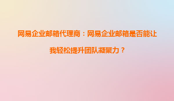 网易企业邮箱代理商:网易企业邮箱是否能让我轻松提升团队凝聚力?