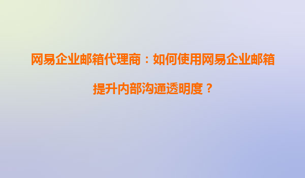 网易企业 email代理商:如何使用网易企业邮箱提升内部沟通透明度