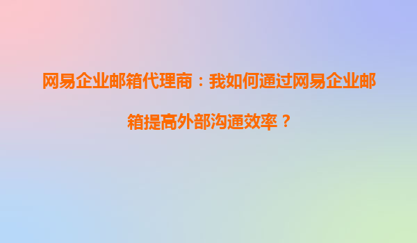网易企业邮箱代理商:如何通过网易企业邮箱提高外部沟通效率?/h1>