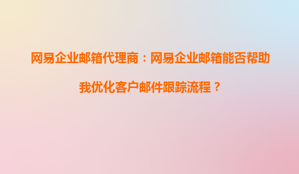 网易企业邮箱代理商:网易企业邮箱能否帮助我优化客户邮件跟踪流程?