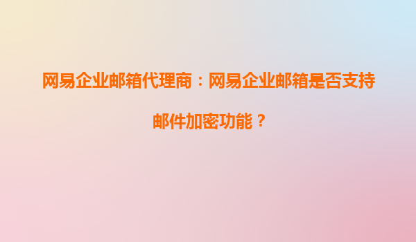 网易企业邮箱代理商:网易企业邮箱是否支持邮件加密功能?