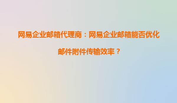 网易企业邮箱代理商:网易企业邮箱能否优化邮件附件传输效率?