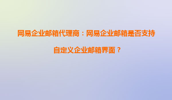 网易企业邮箱代理商:网易企业邮箱是否支持自定义企业邮箱界面?