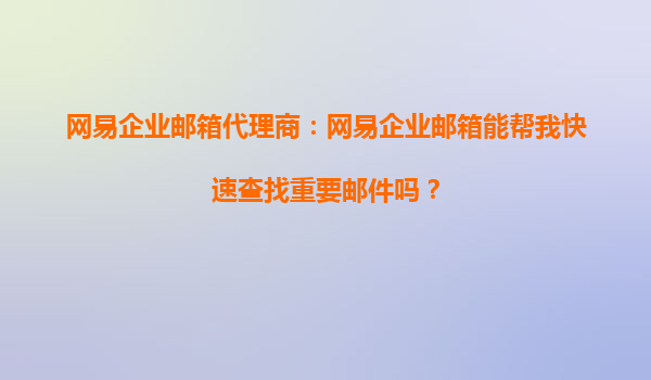 网易企业邮箱代理商:网易企业邮箱能帮我快速查找重要邮件吗?