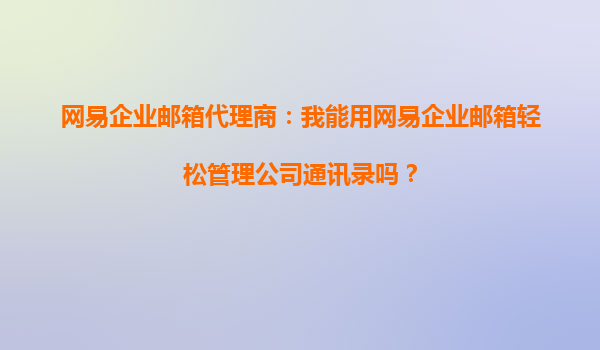 网易企业邮箱:高效管理公司通讯录的智能之选