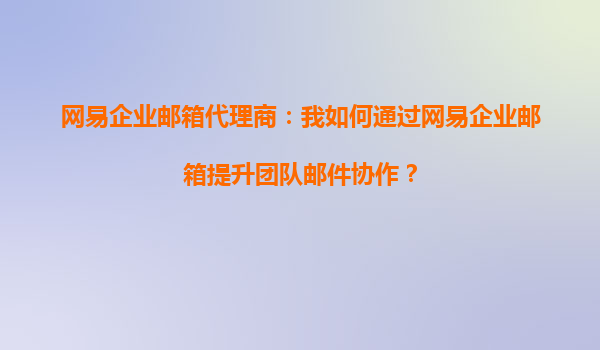网易企业邮箱代理商:我如何通过网易企业邮箱提升团队邮件协作?