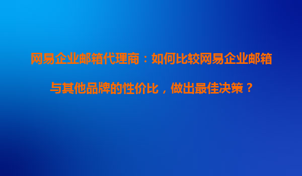 网易企业邮箱代理商:如何比较网易企业邮箱与其他品牌的性价比,做出最佳决策?