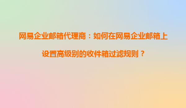 网易企业邮箱代理商:如何在网易企业邮箱上设置高级别的收件箱过滤规则?