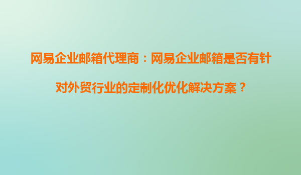 网易企业邮箱代理商:网易企业邮箱是否有针对外贸行业的定制化优化解决方案?