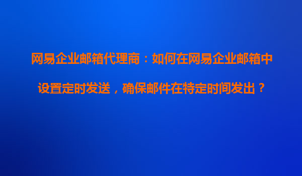 网易企业邮箱代理商:如何在网易企业邮箱中设置定时发送,确保邮件在特定时间发出?