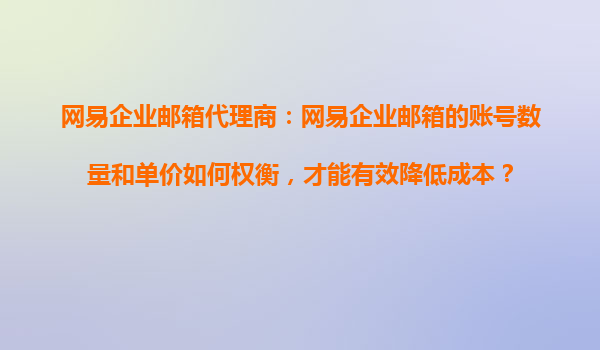 网易企业邮箱代理商:账号数量与单价的科学权衡之道