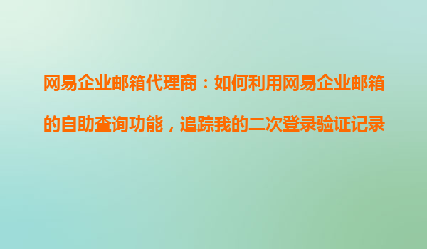 网易企业邮箱代理商:如何利用网易企业邮箱的自助查询功能,追踪我的二次登录验证记录?