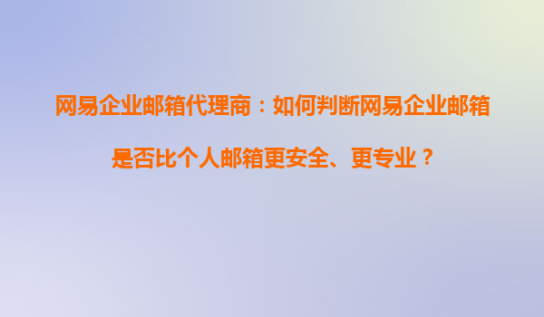 网易企业邮箱代理商:如何判断网易企业邮箱是否比个人邮箱更安全、更专业?