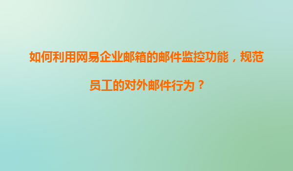 如何利用网易企业邮箱的邮件监控功能,规范员工的对外邮件行为?