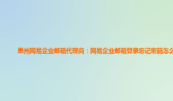 网易企业邮箱代理商:网易企业邮箱登录忘记密码怎么办