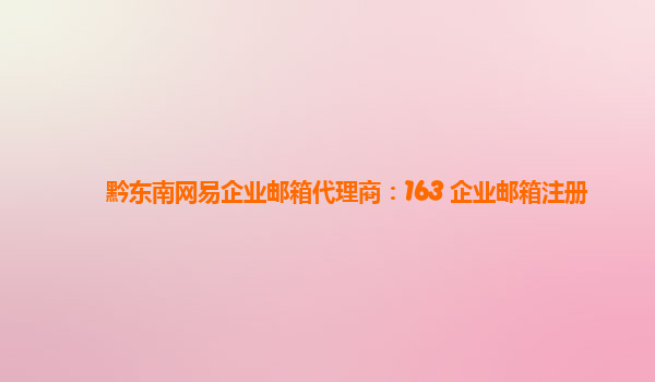 黔东南网易企业邮箱代理商:163 企业邮箱注册