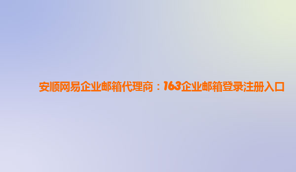 安顺网易企业邮箱代理商:163企业邮箱登录注册入口