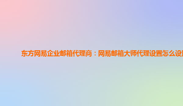 网易企业邮箱是一个功能强大且安全可靠的企业邮箱服务平台,而作为东方网易企业邮箱的代理商,我们可以为您提供专业的代理设置服务。在本文中,我们将详细介绍如何设置网易邮箱大师代理,并分析其优势。
