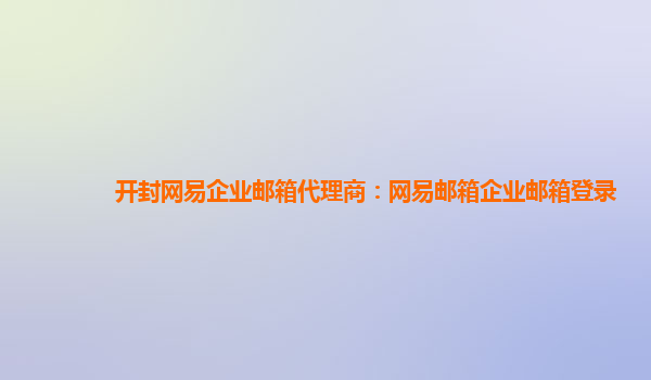开封网易企业邮箱代理商:网易邮箱企业邮箱登录