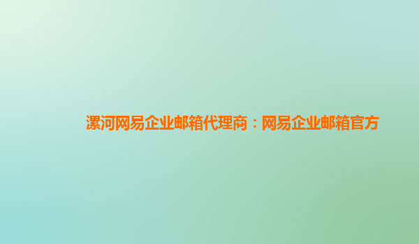 2. 漯河网易企业邮箱代理商