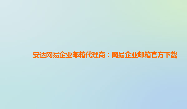 安达网易企业邮箱代理商:网易企业邮箱官方下载