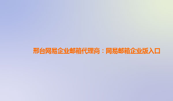 邢台网易企业邮箱代理商:网易邮箱企业版入口