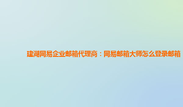 建湖网易企业邮箱代理商:网易邮箱大师怎么登录邮箱