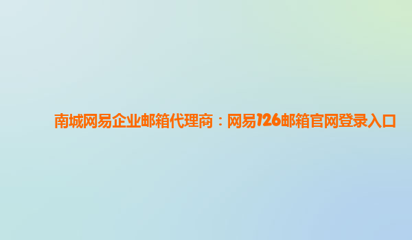网易企业邮箱代理商:网易126邮箱官网登录入口
