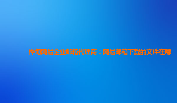 桦甸网易企业邮箱代理商:网易邮箱下载的文件在哪